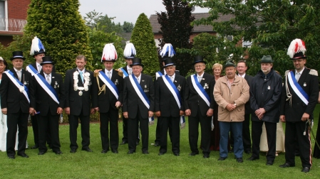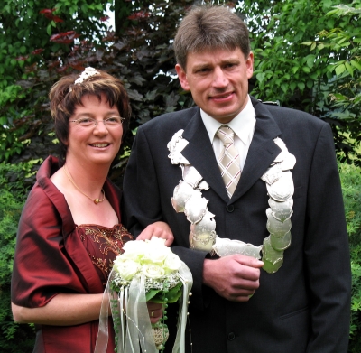 Quelle: Münsterland Zeitung Hubert Icking bringt mit präzisem Schuss Vogel-Rest zu FallStadtlohn - Pfingstmontag, Schauplatz Festgelände der Almsicker Hubertus-Schützen an der Kreisstraße: Es ist 13.25 Uhr, lautstarker Jubel macht sich breit, die Musiker der Wiesentaler Musikkapelle spielen zu einem Tusch auf. Dieser gilt Hubert Icking, der mit dem mittlerweile 182. Schuss die Reste des Vogels von der Stange geholt hat. Mit einem Präzisionsschuss ist er in die Annalen des Schützenvereins St. Hubertus-Almsick eingegangen und neuer Schützenkönig in Almsick geworden. Die einjährige Regentschaft teilt er sich mit Walburga Mensing geb. Hinske-Tenbrink, die er zur Königin erkor.Dem Königsschießen vorausgegangen war am Pfingstmontag das Antreten des Bataillons am Landgasthaus Eichenhof, das Ausholen der Vereinsfahne, des Oberst sowie des noch amtierenden Königspaares, bevor an der Vogelstange am Festzelt dem eigentlichen Höhepunkt des Schützenfestes entgegen gefiebert wurde: dem Ringen um die Königswürde. Die Bewerber hatten ein hartes Stück Arbeit zu verrichten, ehe der hölzerne Vogel seinen Platz in luftiger Höhe räumen musste und der Nachfolger vom Vorjahreskönig Ludger Brockherde ermittelt war. Dem neuen Königspaar zur Seite stehen als Throngefolge: Gerd Mensing und Agnes Icking, Detlef und Ute Mauritz, Paul Wientjes und Ute Lukas-Wientjes, Edmar und Maria Vrzal, Josef und Maria Mensing-Effsing, Gregor Rathmer und Carola Jansen-Beckmann, Ludger und Maria Döbbelt-Lepping, Alois und Maria Icking, Norbert und Hedwig Steggemann, Manfred Lensker und Maria Lensker-Watermann, Ulrich und Maria Söbbing, Thomas und Andrea Ameling sowie Wolfgang und Birgit Ritter. Mittwoch, 30. Mai 2007 | Quelle: Münsterland Zeitung (Stadtlohn)